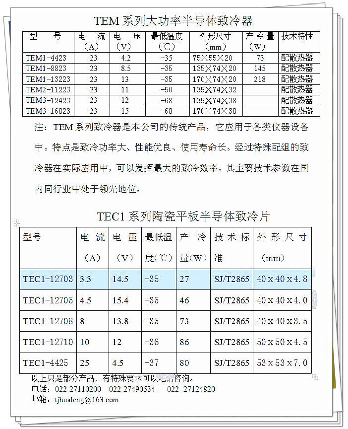TEM系列半导体致冷器